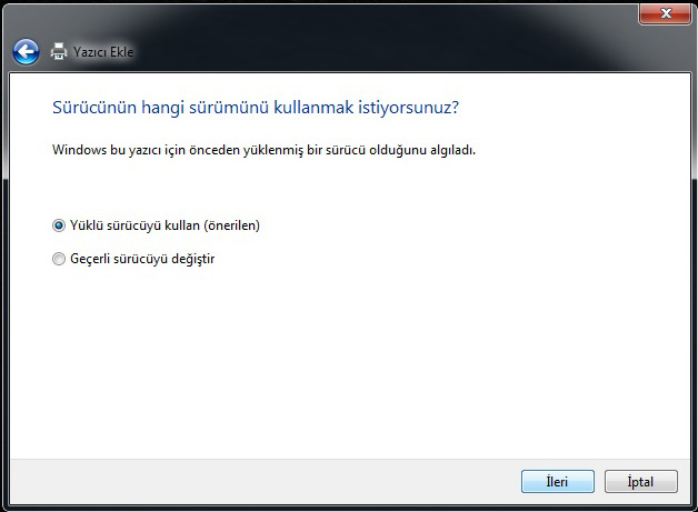 8. Bu ekranda ''Yüklü sürücüyü kullan'' seçeneğini seçerek İLERİ seçeneğine tıklayınız.