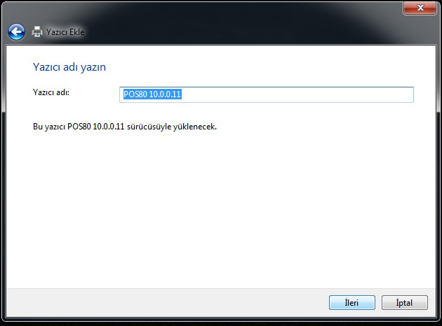 9. Yazıcı adını değiştirebilir veya bu şekilde İLERİ seçeneğine tıklayınız.